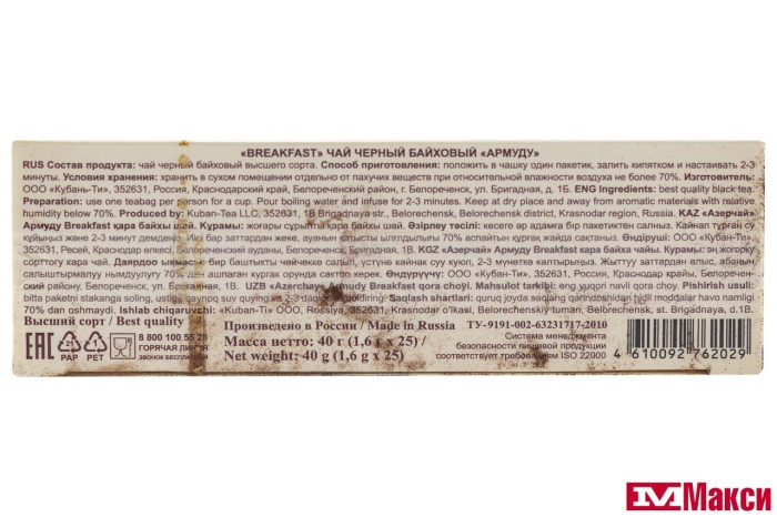 ЧАЙ "АРМУДУ" BREAKFAST ЧЕРНЫЙ 25ПАКЕТИКОВ (АЗЕРЧАЙ)