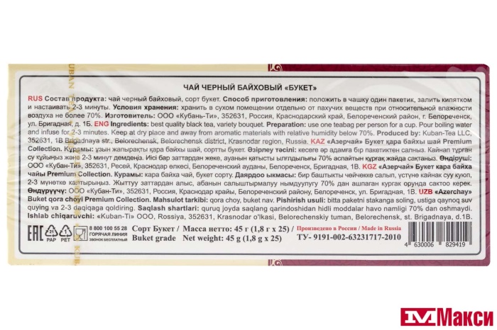 ЧАЙ "БУКЕТ" PREMIUM COLLECTION ЧЕРНЫЙ 25 ПАКЕТИКОВ (АЗЕРЧАЙ)