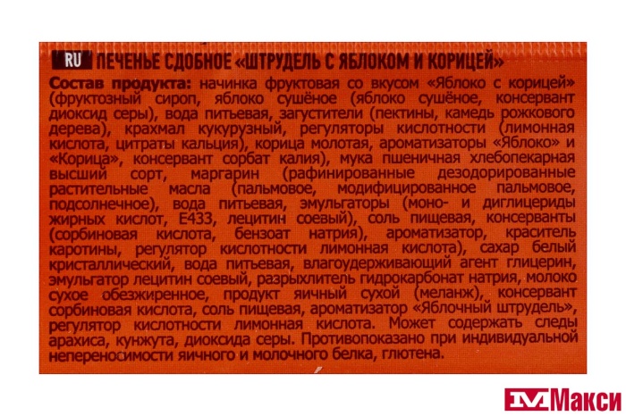 ПЕЧЕНЬЕ "ШТРУДЕЛЬ С ЯБЛОКОМ И КОРИЦЕЙ" 255Г (УРА КОНДИТЕРЫ)