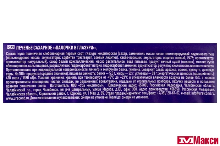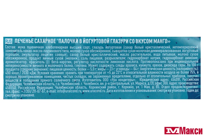 ПЕЧЕНЬЕ "ПАЛОЧКИ В ЙОГУРТОВОЙ ГЛАЗУРИ СО ВКУСОМ МАНГО" 200Г (УРА КОНДИТЕРЫ)