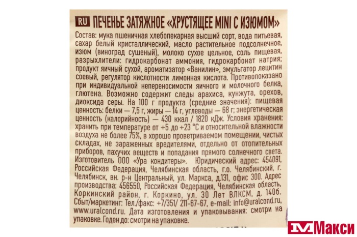 ПЕЧЕНЬЕ "ХРУСТЯЩЕЕ MINI С ИЗЮМОМ" 250Г (УРА КОНДИТЕРЫ)