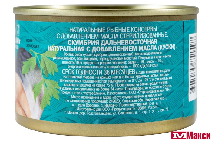СКУМБРИЯ (5 МОРЕЙ) ДАЛЬНЕВОСТОЧНАЯ НАТУР.С Д/М 240Г Ж/Б