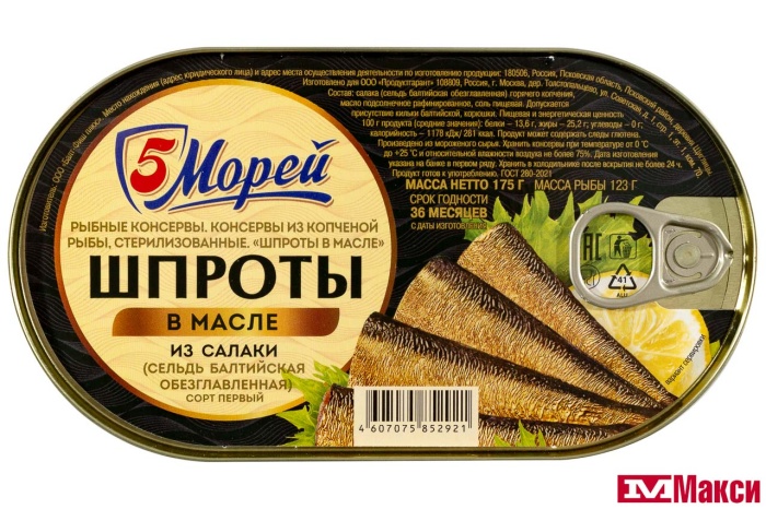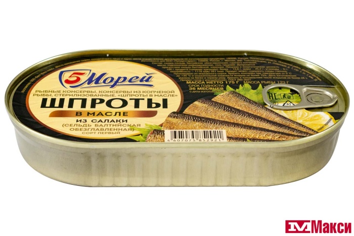 ШПРОТЫ (5 МОРЕЙ) ИЗ САЛАКИ В МАСЛЕ 175Г Ж/Б