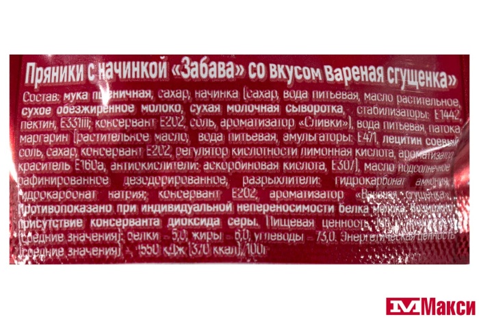 ПРЯНИКИ "ЗАБАВА" СО ВКУСОМ ВАРЕНОЙ СГУЩЕНКИ (ПЕНЗЕНСКАЯ КФ)