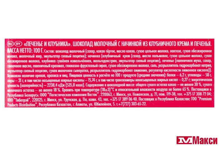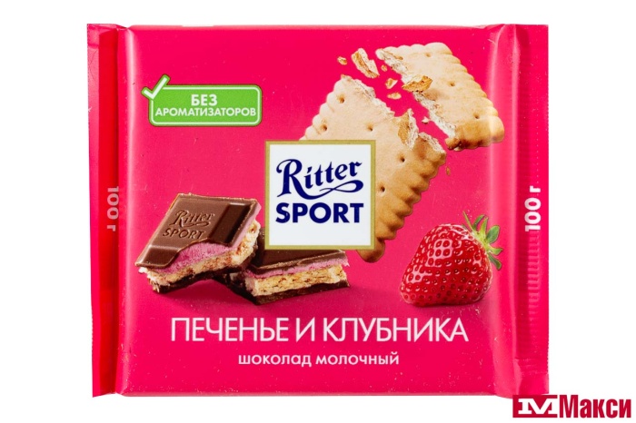 ШОКОЛАД "РИТТЕР СПОРТ" ПЕЧЕНЬЕ И КЛУБНИКА МОЛОЧНЫЙ 100Г