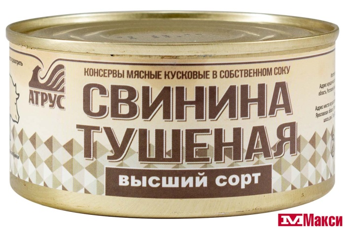 СВИНИНА ТУШЕНАЯ ВЫСШИЙ СОРТ 325Г Ж/Б (АТРУС)