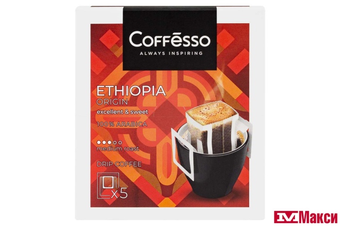 КОФЕ МОЛОТЫЙ "COFFESSO" ETHIOPIA ORIGIN ДРИП-ПАКЕТ 10ГХ5ШТ (МАЙ)