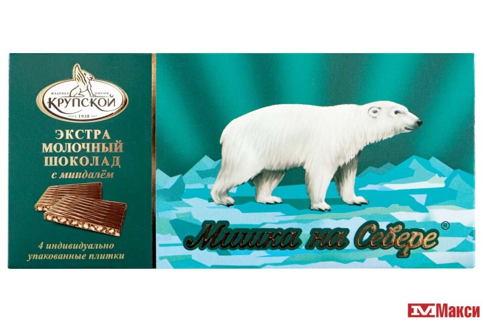 ШОКОЛАД "МИШКА НА СЕВЕРЕ" ЭКСТРАМОЛОЧНЫЙ С МИНДАЛЕМ 40Г (КРУПСКАЯ)