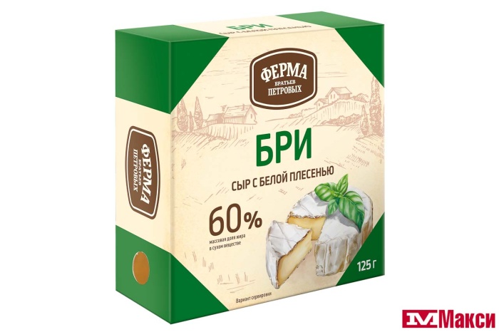 СЫР "БРИ" С БЕЛОЙ ПЛЕСЕНЬЮ 60% 125Г (ФЕРМА БРАТЬЕВ ПЕТРОВЫХ) (БЗМЖ)