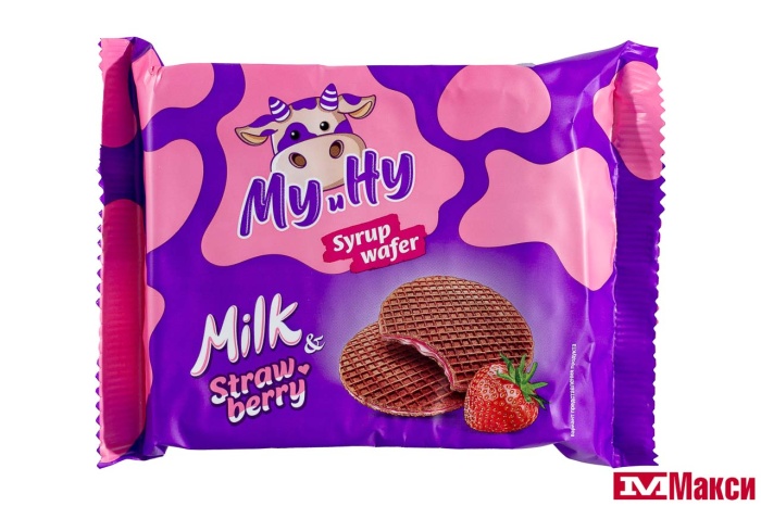 ВАФЛИ "МУ И НУ" С МОЛОКОМ И КЛУБНИКОЙ СИРОПНЫЕ 120Г (СЛАДОНЕЖ)