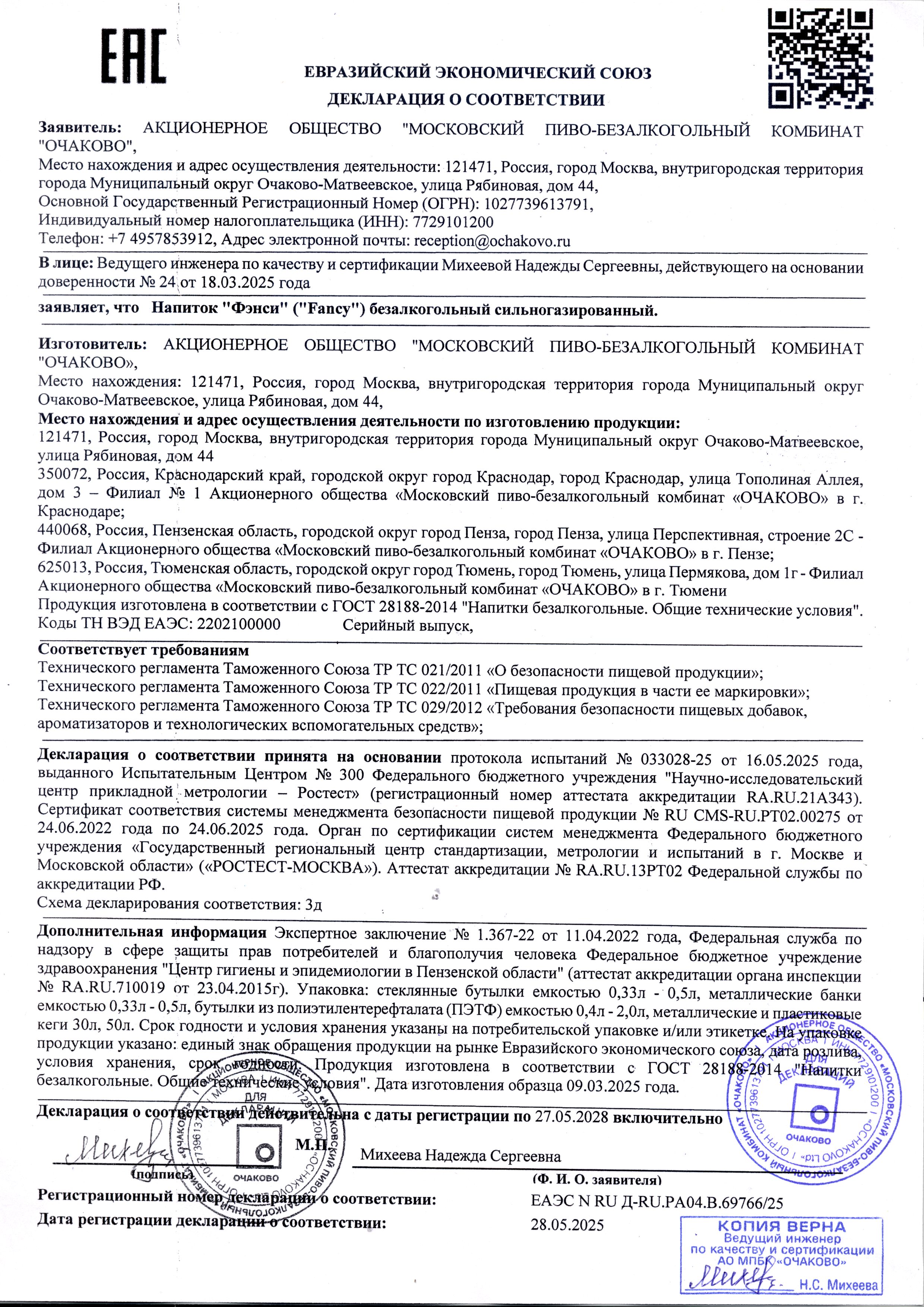 НАПИТОК СИЛЬНОГАЗИРОВАННЫЙ "FANCY" 2Л ПЭТ (ОЧАКОВО)