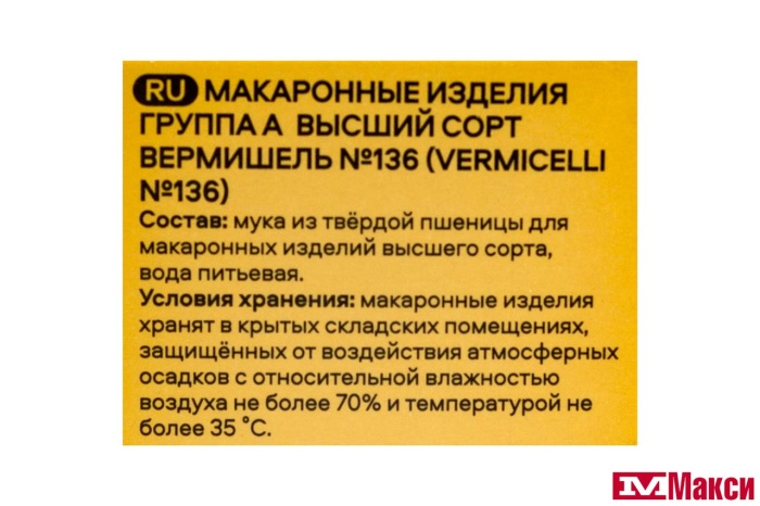 МАКАРОННЫЕ ИЗДЕЛИЯ "PASTERONI" ВЕРМИШЕЛЬ №136 400Г