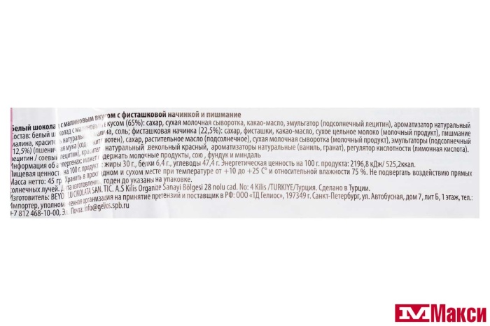 ШОКОЛАД "ANGEL HAIR" MILKY PINKY БЕЛЫЙ С МАЛИНОВЫМ ВКУСОМ С ФИСТАШКОВОЙ НАЧИНКОЙ И ПИШМАНИЕ 45Г (BEYOGLU)