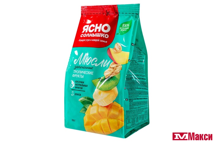 МЮСЛИ "ТРОПИЧЕСКИЕ ФРУКТЫ" ЗАПЕЧЕННЫЕ 300Г (ЯСНО СОЛНЫШКО)