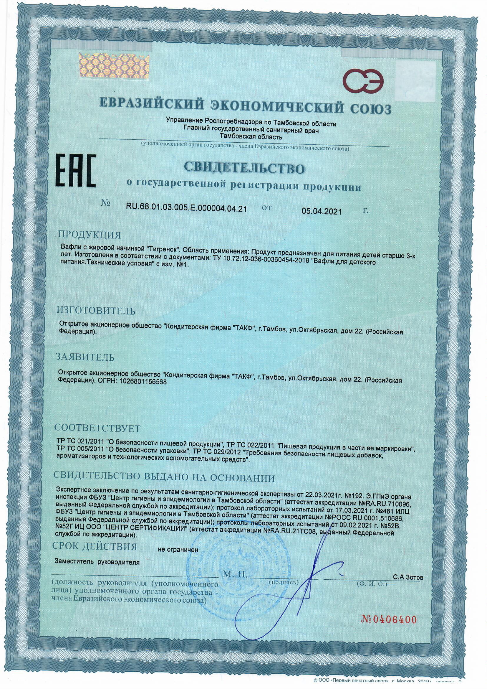 ВАФЛИ "ТИГРЕНОК" 14Г (ТАМБОВСКАЯ КФ)