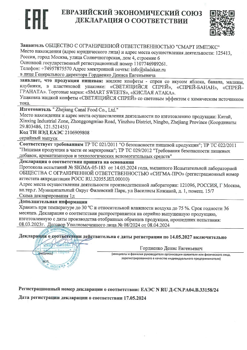 Спреи со вкусом яблока, банана, малины, клубники, в пластиковой упаковке. Необычный негазированный напиток с кислым вкусом, что понравится каждому малышу и любителю необычных вкусностей. Игрушка в виде фонарика маленькая и не занимает большое количество места в сумке или в рюкзаке ребенка. Поэтому, ребенок может носить ее с собой везде. Чтобы игрушка начала светиться, нужно нажать на кнопку.