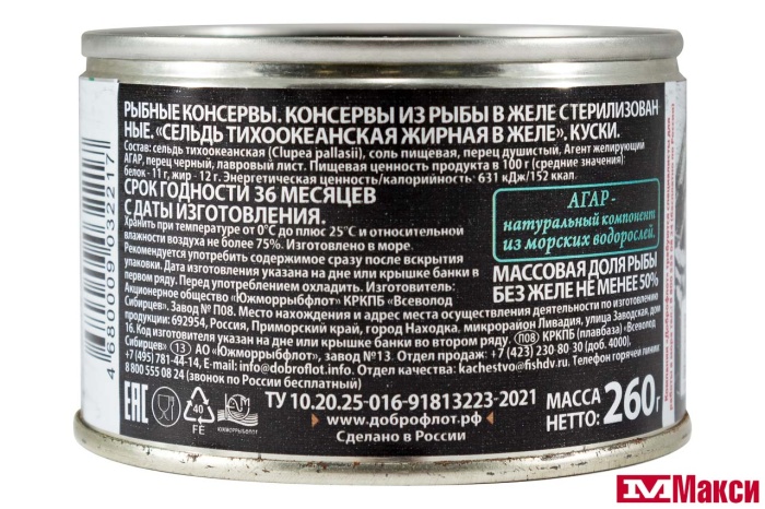 САРДИНА "АЗБУКА МОРЯ" ТИХООКЕАНСКАЯ НАТУРАЛЬНАЯ 245Г Ж/Б
