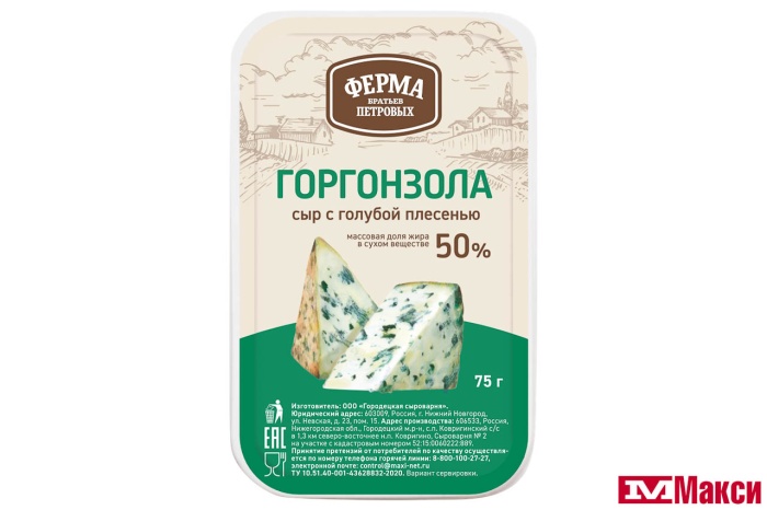 СЫР "ГОРГОНЗОЛА" С ГОЛУБОЙ ПЛЕСЕНЬЮ 50% 75Г (ФЕРМА БРАТЬЕВ ПЕТРОВЫХ)(БЗМЖ)