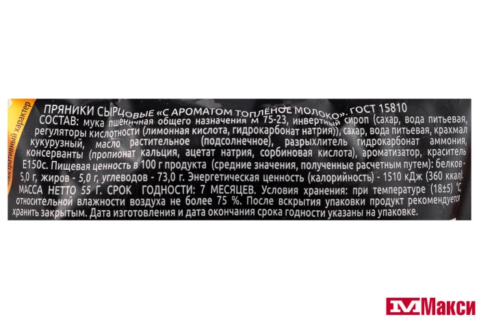 ПРЯНИКИ "САЖИНСКИЙ" С АРОМАТОМ ТОПЛЕНОЕ МОЛОКО 55Г (ВОРОНЕЖ)