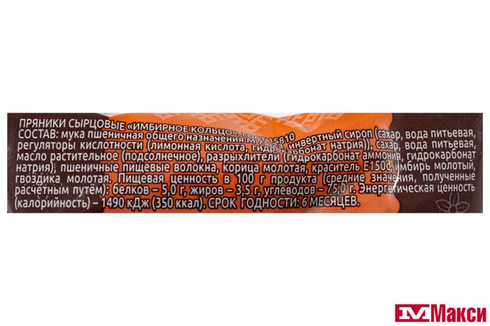 ПРЯНИКИ "САЖИНСКИЙ" ИМБИРНОЕ КОЛЬЦО 50Г (ВОРОНЕЖ)