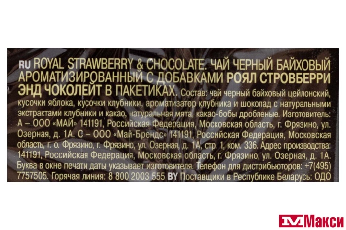 ЧАЙ "RICHARD" ROYAL STRAWBERRY & CHOCOLATE ЧЕРНЫЙ 20ПАКЕТИКОВ (МАЙ)