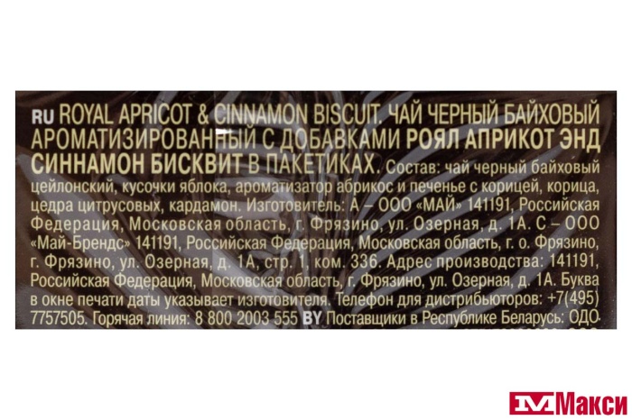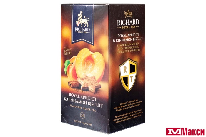ЧАЙ "RICHARD" ROYAL APRICOT & CINNAMON BISCUIT ЧЕРНЫЙ 20ПАКЕТИКОВ (МАЙ)
