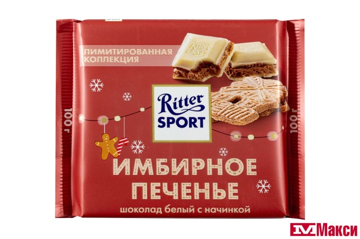 ШОКОЛАД "РИТТЕР СПОРТ" ИМБИРНОЕ ПЕЧЕНЬЕ БЕЛЫЙ 100Г