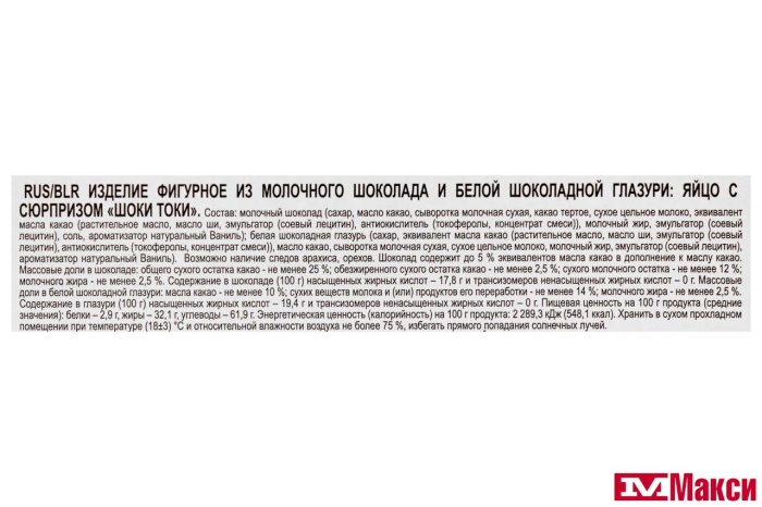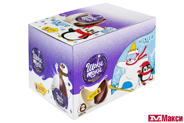 ЯЙЦО ШОКОЛАДНОЕ "ШОКИ-ТОКИ" WINTER TIME ДВУХЦВЕТНОЕ С СЮРПРИЗОМ 20Г (КОНФИТРЕЙД)