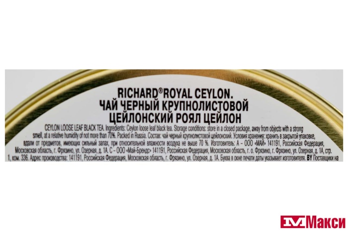 ЧАЙ "RICHARD" ROYAL CEYLON ЧЕРНЫЙ КРУПНОЛИСТОВОЙ 180Г Ж/Б (МАЙ)