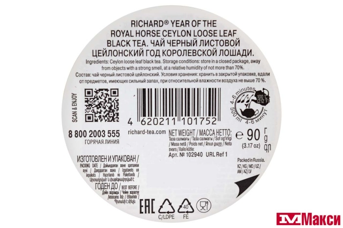 ЧАЙ "RICHARD" YEAR OF THE ROYAL HORSE ЧЕРНЫЙ КРУПНОЛИСТОВОЙ 90Г Ж/Б (МАЙ)
