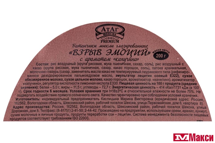 КОНФЕТЫ "ВЗРЫВ ЭМОЦИЙ" МЮСЛИ С АРОМАТОМ КАПУЧИНО 200Г (АТАГ)