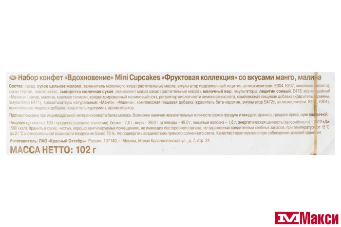 ШОКОЛАДНЫЕ КОНФЕТЫ "ВДОХНОВЕНИЕ" MINI CUPCAKES МАНГО-МАЛИНА 102Г (КРАСНЫЙ ОКТЯБРЬ)