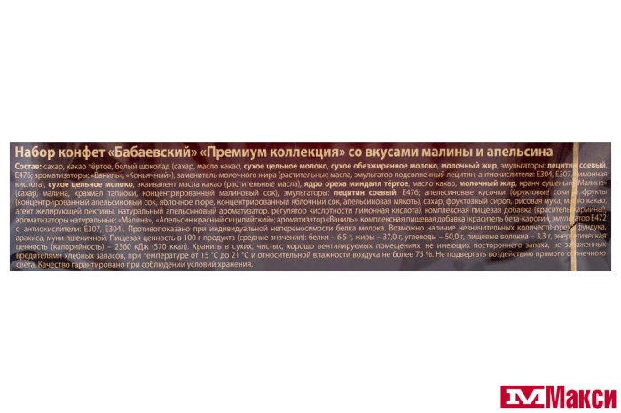 ШОКОЛАДНЫЕ КОНФЕТЫ "БАБАЕВСКИЕ" ПРЕМИУМ КОЛЛЕКЦИЯ МАЛИНА-АПЕЛЬСИН 105Г (БАБАЕВСКИЙ)