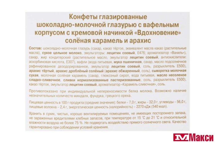 ШОКОЛАДНЫЕ КОНФЕТЫ "ВДОХНОВЕНИЕ" С СОЛЕНОЙ КАРАМЕЛЬЮ И АРАХИСОМ 112Г (КРАСНЫЙ ОКТЯБРЬ)