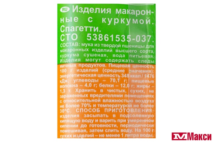 МАКАРОННЫЕ ИЗДЕЛИЯ "WELLNESS" С КУРКУМОЙ СПАГЕТТИ 400Г (МАКФА)