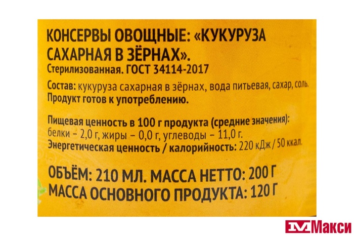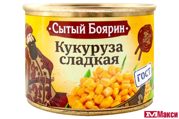 КУКУРУЗА СЛАДКАЯ КОНСЕРВИРОВАННАЯ "СЫТЫЙ БОЯРИН" 200Г Ж/Б С КЛЮЧОМ