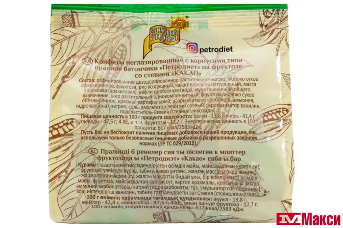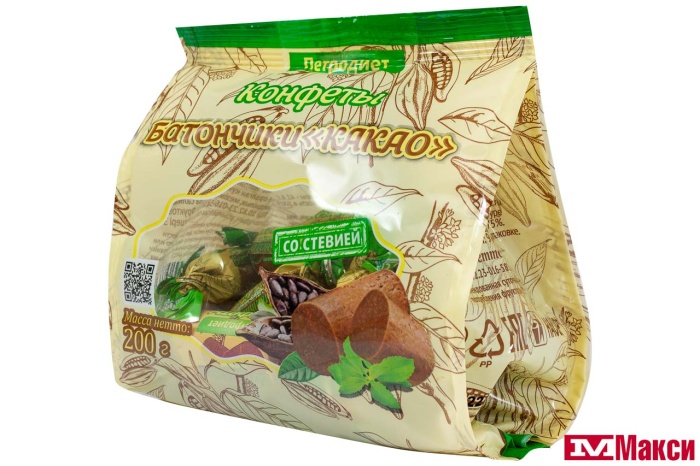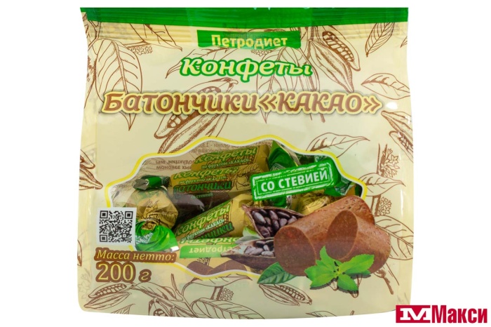 КОНФ.(ПЕТРОДИЕТ) БАТОНЧИКИ "КАКАО" СО СТЕВИЕЙ НА ФРУКТОЗЕ 200Г
