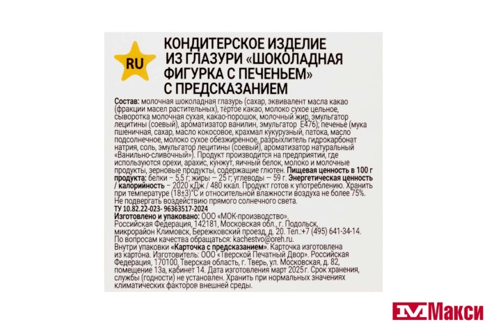 ШОКОЛАД МОЛОЧНЫЙ С ПЕЧЕНЬЕМ 45Г (МОК-МОК)