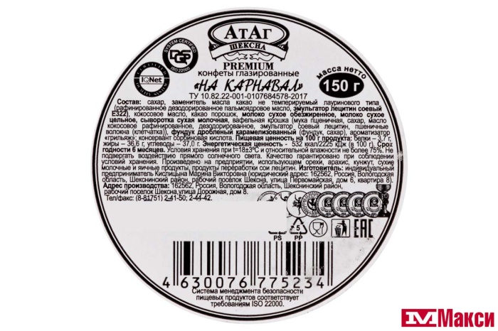 КОНФЕТЫ "НА КАРНАВАЛ" ШАР 150Г (АТАГ)