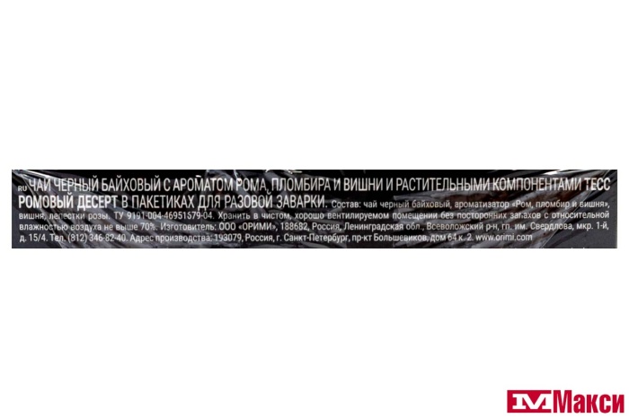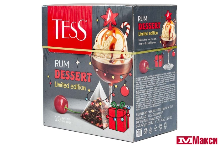 ЧАЙ "TESS" РОМОВЫЙ ДЕСЕРТ ЧЕРНЫЙ 20ПИРАМИДОК (ОРИМИ-ТРЭЙД)