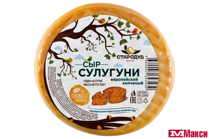 СЫР "СУЛУГУНИ ЕВРОПЕЙСКИЙ" КОПЧЕНЫЙ 45% 300Г (СТАРОДУБ) (БЗМЖ)