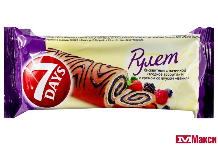 РУЛЕТ "7 DAYS" 200Г(ягодное ассорти с кремом "ваниль")