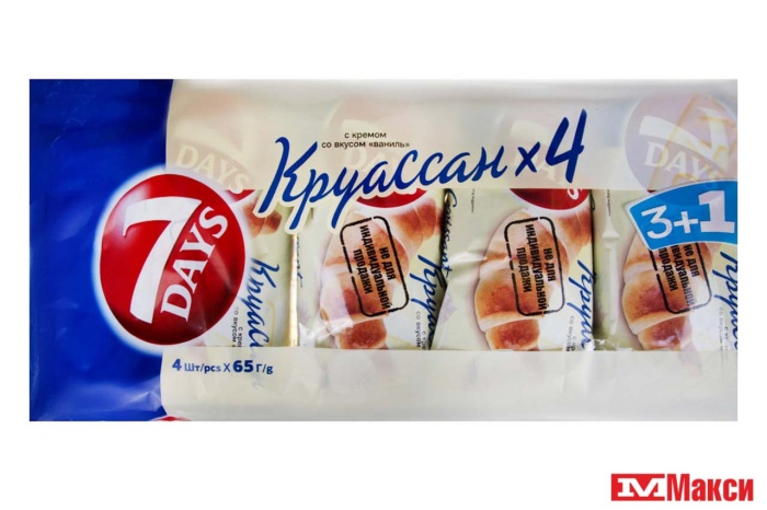 КРУАССАНЫ "7 DAYS SINGLE" 65ГХ3+1 (МУЛЬТИУПАКОВКА) В АССОРТ.(ваниль)