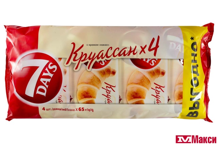 КРУАССАНЫ "7 DAYS SINGLE" 65ГХ3+1 (МУЛЬТИУПАКОВКА) В АССОРТ.(какао)