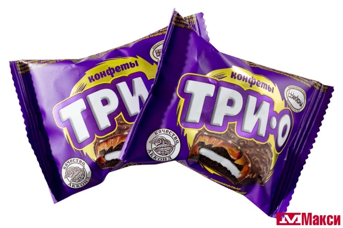 КОНФЕТЫ "ТРИО" С ПЕЧЕНЬЕМ,КАРАМЕЛЬЮ И НАЧИНКОЙ СО ВКУСОМ ПЛОМБИРА (АККОНД)