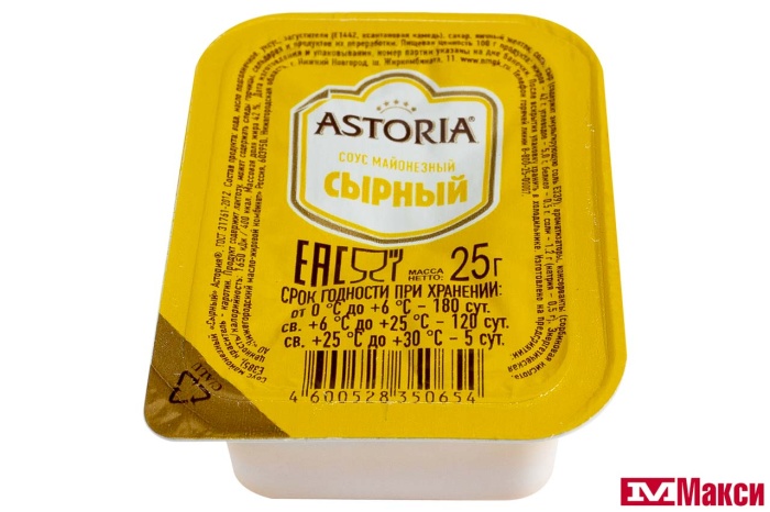 СОУС МАЙОНЕЗНЫЙ "АСТОРИЯ" СЫРНЫЙ 42% 25Г (НМЖК)