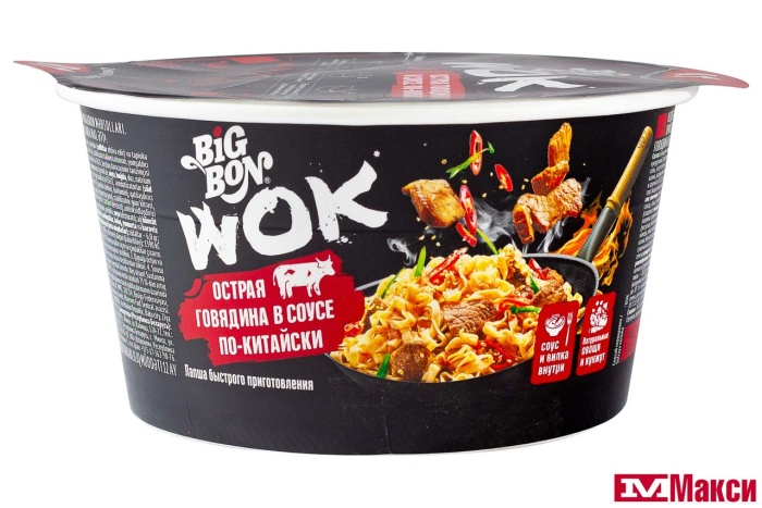 ЛАПША БЫСТРОГО ПРИГОТОВЛЕНИЯ "БИГ БОН WOK" 85Г(острая говядина в соусе "по-китайски")