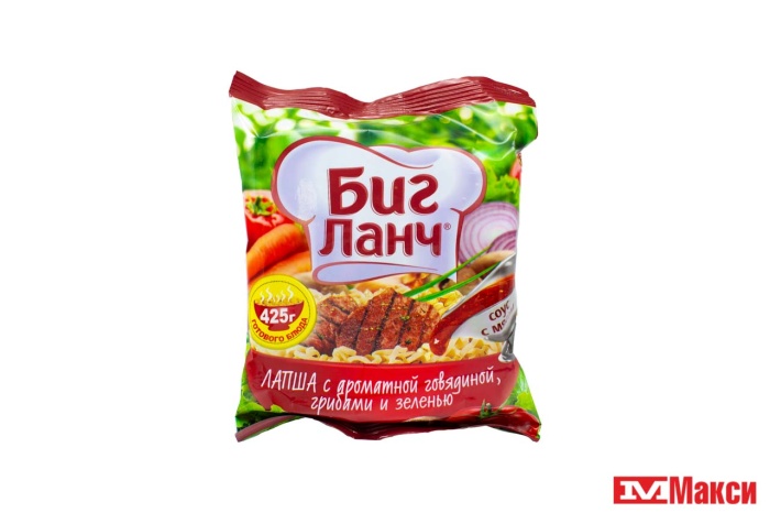 ЛАПША БЫСТРОГО ПРИГОТОВЛЕНИЯ "БИГ ЛАНЧ" 90Г (КУХНЯ БЕЗ ГРАНИЦ)(с ароматом говядины, грибами и зеленью)
