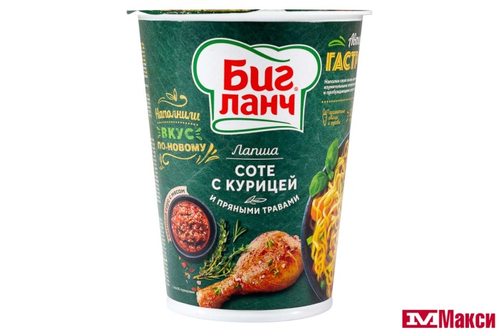 ЛАПША БЫСТРОГО ПРИГОТОВЛЕНИЯ "БИГ ЛАНЧ" 90Г (КУХНЯ БЕЗ ГРАНИЦ)(cоте с курицей и пряными травами)