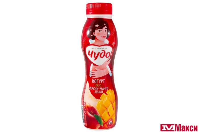 ЙОГУРТ ПИТЬЕВОЙ "ЧУДО" 1,9-2% 260Г (ВБД) (БЗМЖ)(персик-манго-дыня)